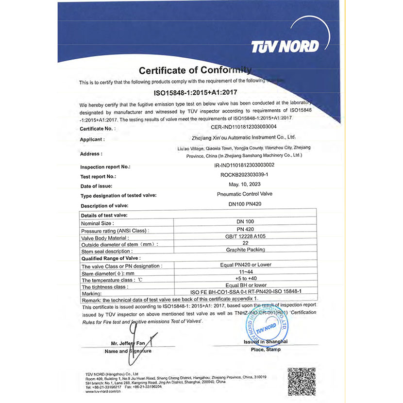 調節閥 微泄露證書 1