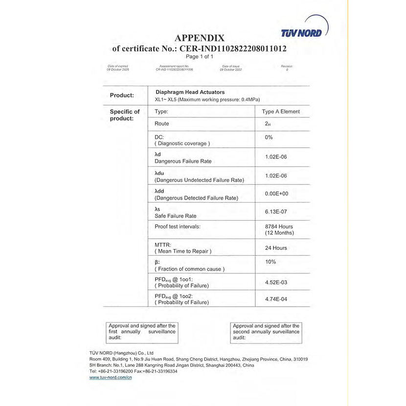 薄膜型執(zhí)行器 SIL證書 2