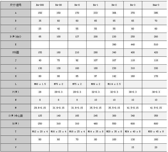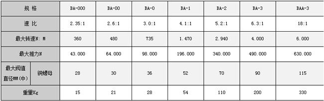 BA-0型傘齒輪產品參數