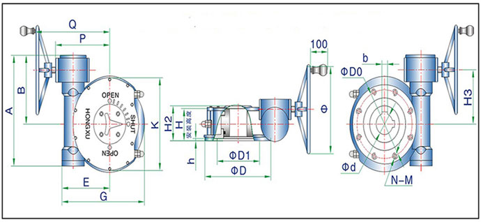 該產品是一種90°回轉型驅動裝置,適用于球閥、蝶閥、旋塞閥等類閥門。特殊型可輸出360°轉角。通常增設一級蝸輪減速機構。為雙級傳動,以減少手動操作力。